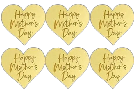 - 6 mini cake toppers de acrílico en forma de corazón color dorado con motivo de "Mother's Day"